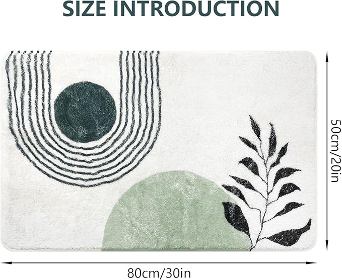 20"X30" Boho Bath Rugs for Bathroom Decor Non-Slip Bath Mat Absorbent Plush Microfiber Soft Carpet Machine Washable Bath Mat for Sink, Showers, Laundry Rooms, Living Room, Green