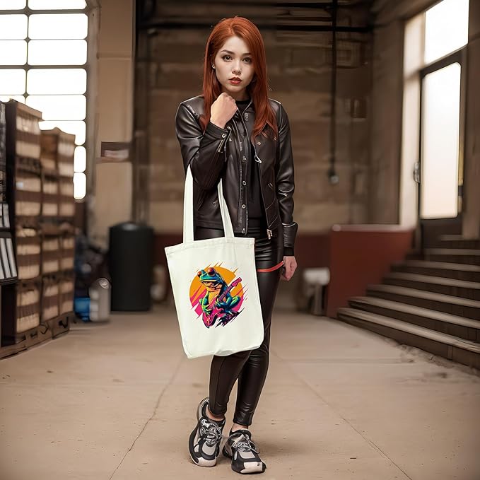 - FROG TOTE BAG WITH DOUBLE-SIDED PRINTING: The frog bassist is on both sides, front and back. Other aesthetic tote bags usually only have one-sided printing. The tote bag has a flat canvas bottom, which looks more three-dimensional and can hold more things.
