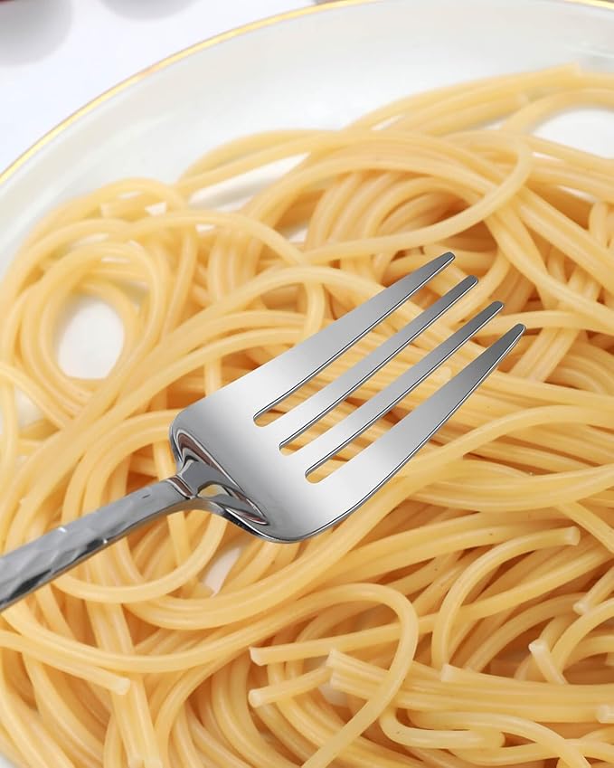 - Design Inspiration:This cutlery set has been refined from its original classic design, with the incorporation of a hammered texture on the handles, enhancing both its functionality and modern aesthetic. The hammered design on the handles not only provides better grip but also adds a contemporary touch