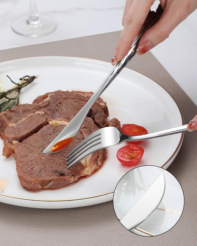 - Premium Stainless Steel:This flatware set is crafted from high-quality stainless steel, ensuring durability and longevity. Additionally, it features a mirror-polished finish, making it easier to clean and maintain