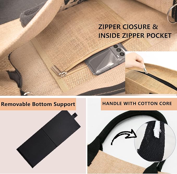 - TOP ZIPPER & REMOVABLE BOARD BOTTOM: This unique gifts bag for woman have 2 pockets, a removable bottom, and adjustable shoulder straps. The side pockets can hold your water bottle. the large initial tote bag also has inner ziper pockets for your phone. The top zipper closure design keeps your items don't fall off. Our woman gifts tote bag with a detachable and adjustable shoulder strap.This canvas tote bag is an excellent beach bag, wedding bag, work tote bag, travel bag, inspirational gifts.