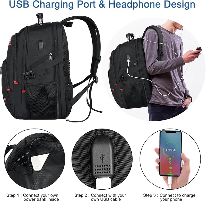 - 【USB Port & Anti-Theft】: Built-in USB PORT is convenient to charge your cell phone in a safe way (NOTE: POWER BANK is NOT included). This travel backpack for men is large and durable, which is perfect for college, travel, business, everyday use and outdoor activities. Practical gifts for mother, father, her or him, family and friends