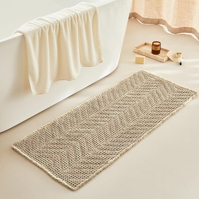 - Upgraded Waffle Desgin: This boho bath mat is power-loomed with upgraded yarns-Integrating decoration and durability. The heavier and thicker threads are applied to make sure the pattern will be more solid and compact- NEVER OUT OF SHAPE!