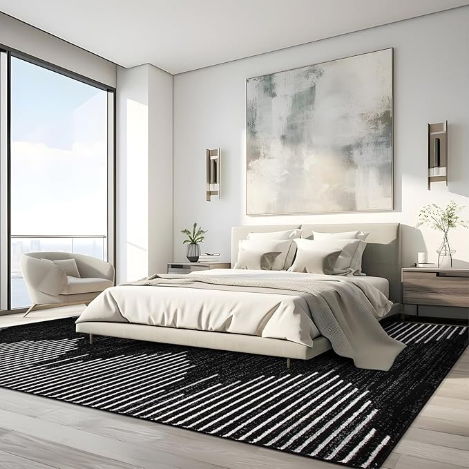 Rugshop Bohemian Stripe Stain Resistant High Traffic Living Room Kitchen Bedroom Dining Home Office Area Rug 10' x 14' Black
