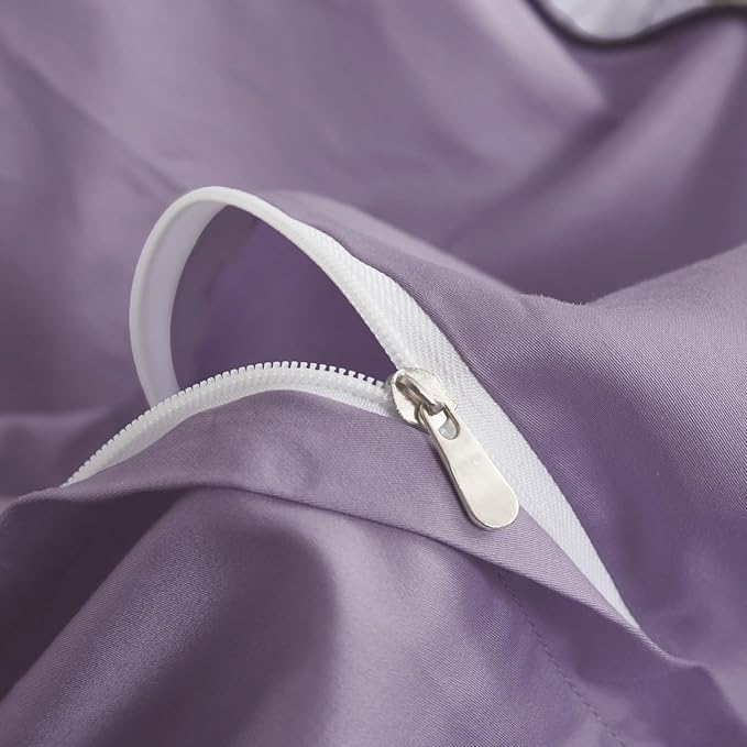 mixinni Garden Style King Duvet Cover Set Purple Large Flower on White Duvet Cover Long Staple Cotton Fresh Floral Leaves Bedding Set with Zipper Ties Perfect for Him and Her-(3pcs, King Size)