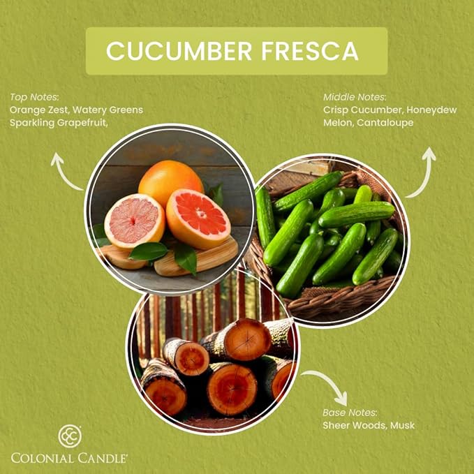 - REFRESH | Exhilarate your senses with Cucumber Melon. Notes of citrus zest and crisp cucumber are paired with sheer woods to add a warm finish to the revitalizing scent.