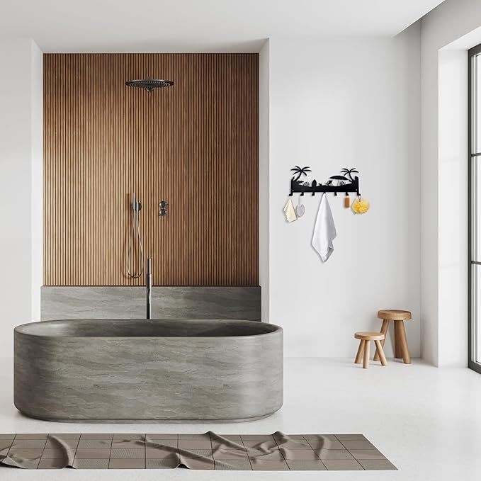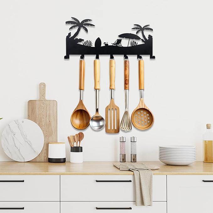 - Tropical Ambiance: Add a beachy vibe to your decor with this wall-mounted key hook rack featuring a relaxing tropical scene with palm trees