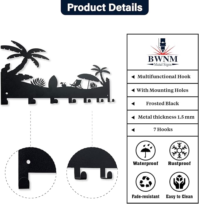 - Organize in Style: Keep keys, sunglasses, and small beach gear handy with 7 sturdy hooks, making it easier to grab what you need and go.
