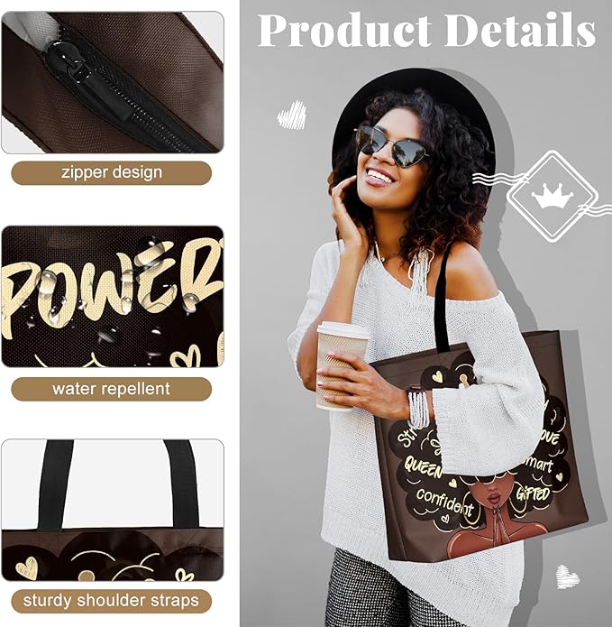 African American Black Women Tote Bag Black Girl Magic Shoulder Handbag For Work Travel Beach Shopping