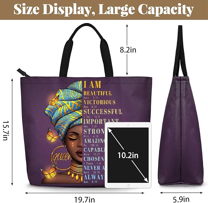 - 【Versatile African Tote Bag】: Black Tote Bag For Laptops,Sport, Dance, Gym,Work,Schol, Party, Shopping, Traveling, Etc.