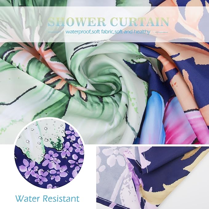 - Flower Shower Curtains: Flowered shower curtain adopts high-definition digital printing technology,the pattern is printed clearly with bright colors.The colorful floral pattern can be perfectly matched with various bathroom styles,and the colorful floral shower curtain will brighten up your bathroom