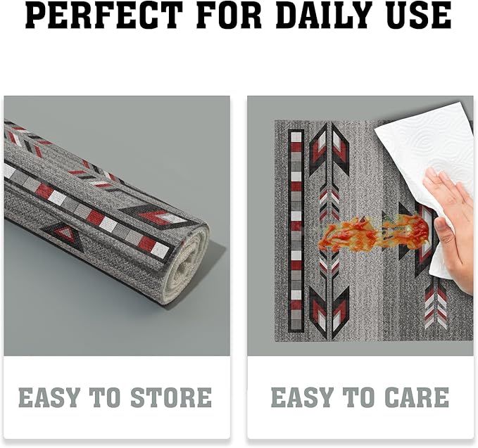 Giwawa Southwestern Placemats, Grey Red Tribal Geometric Decorative Table Mats, Native American Ethnic Farmhouse Non-Slip Place Mat for Dining Kitchen Party, 12x18Inch, Set of 4