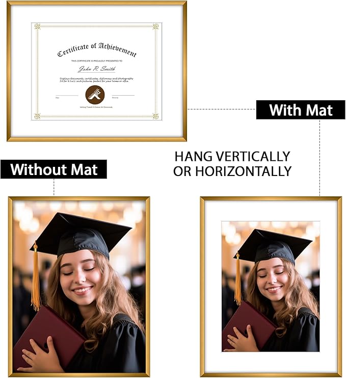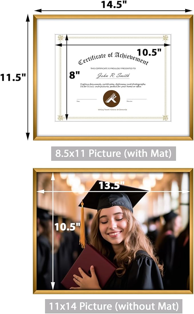 - Can Display:Each 14x11 frame includes a removable Mat (opening size: 8"x10.5"), fits for 8.5 x 11 document (with Mat) or 11 x 14 poster (without Mat)