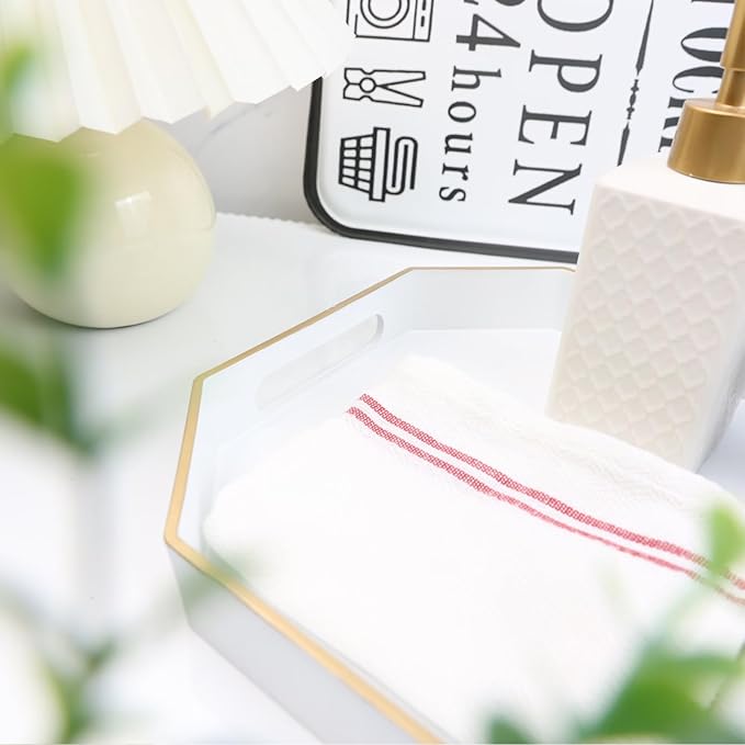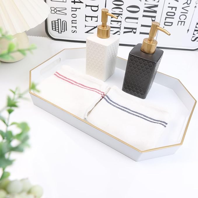 White Decorative Tray with Handles, Octagon Versatile Serving Tray for Coffee Table, Ottoman, Ideal for Serving, Displaying, Organizing