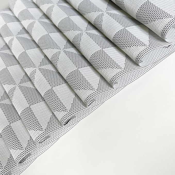 Placemat,Blending Color Durable Woven Vinyl Placemat Washable Heat-Resistant Anti-Skid Kitchen Dining Table Mats (Set of 8, White Black)