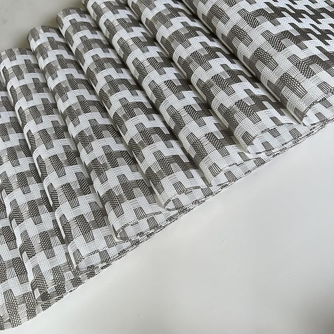 Placemat,Blending Color Durable Woven Vinyl Placemat Washable Heat-Resistant Anti-Skid Kitchen Dining Table Mats (Set of 8, Silver White)