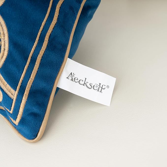 Aeckself European Floral Pillow Cover 12x20 Inch, Luxury Velvet Embroidered Decorative Lumbar Throw Pillow Cover for Couch Bedroom Living Room, Navy Blue and Gold, Yw-OBYG-Blue3050