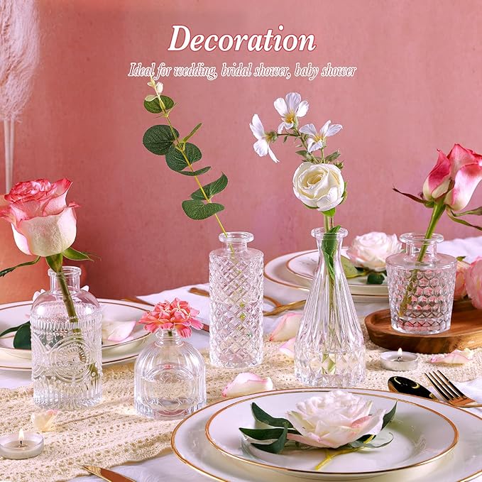 Clear Glass Bud Vases Set of 5, Mini Flower Vase for Centerpieces, Small Clear Vases in Bulk for Wedding Decorations, Vintage Vase for Table, Recepetion, Home Décor