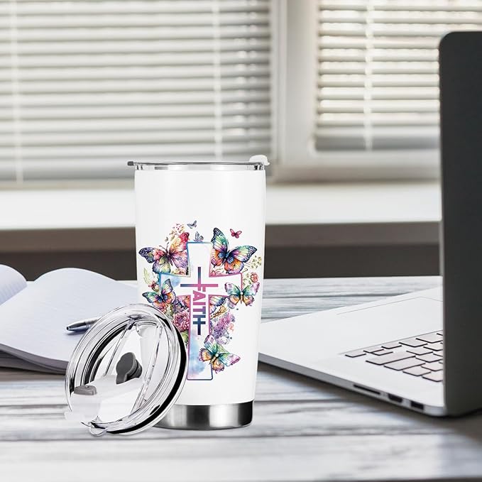 Christian Gifts for Women Sister Tumbler, Inspirational Bible Verse Butterfly Gifts Birthday Christmas, Faith Religious Coffee Mug Stainless Steel Vacuum Insulated Double Wall Travel Cup with Lid,20oz