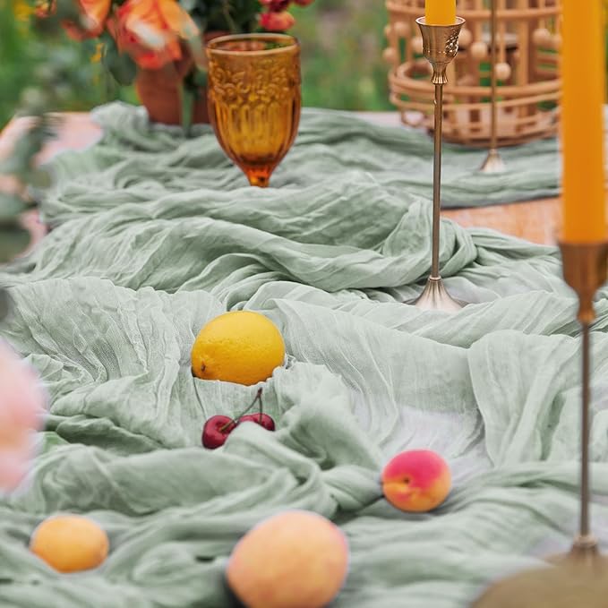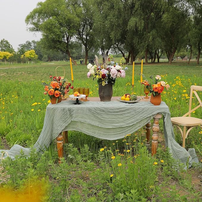 - 【WIDE APPLICATION】Our cheesecloth table runner is the perfect addition to any rustic-themed event. Its elegant design and sheer texture add a touch of boho charm to table decorations for occasions like Easter, weddings, bridal showers, baby showers, woodland baby shower, and birthdays party decorations. You can also purchase them as gift wrapping for Christmas, Thanksgiving Day, Valentine's day, Graduation party, anniversary, celebration and so on.