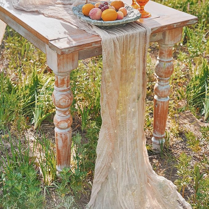 - 【SOFT MATERIAL】This cheesecloth table runner is made from soft quality premium gauze table runner with wrinkled gauze fabric. It is soft while also being romantic, delicate, and flowy. This gauze table runner is available in ten other colors and in packs of varying quantities.will work well in a rust,bohemian, farmhouse, or contemporary setting. You won’t want to miss out on adding this table runner to your dining space.