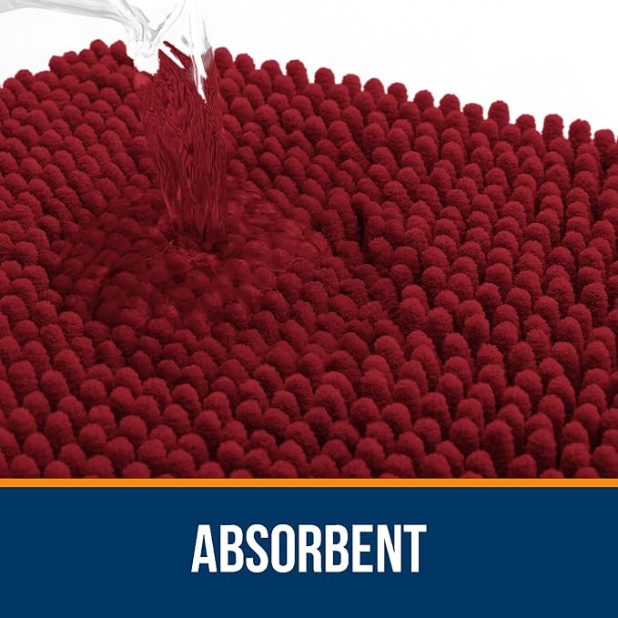 OLANLY Bathroom Rugs 30x20, Extra Soft Absorbent Chenille Bath Rugs, Rubber Backing Quick Dry, Machine Washable Bath Mats for Bathroom Floor, Tub and Shower, Home Decor Accessories, Red