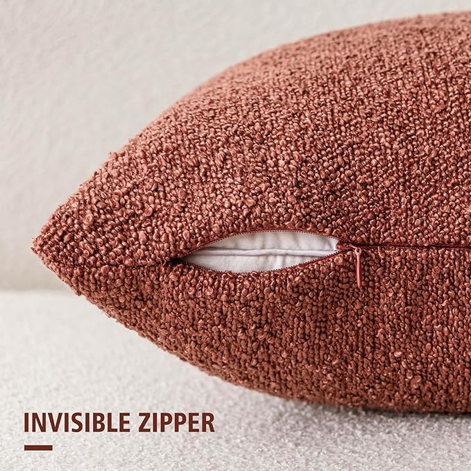 Foindtower Pack of 2, Decorative Textured Boucle Throw Pillow Covers Accent Solid Pillow Cases Soft Cozy Couch Cushion Case for Chair Sofa Bedroom Living Room Home Decor 16x16 Inch Orange Rust Red