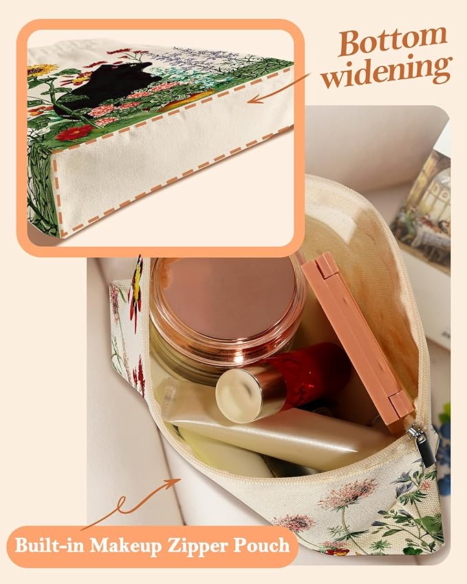 - Two Canvas Bags Set: The combination of a large tote bag measuring at 14*15 inch(the handles 11 inch) and a cosmetic makeup zipper pouch bag(6*8.5inch) make it easier to organize daily personal effects. The zipper design of the small organizer bag won't let lipstick, blush, keys, earphones, paper towels and other small items fall out.