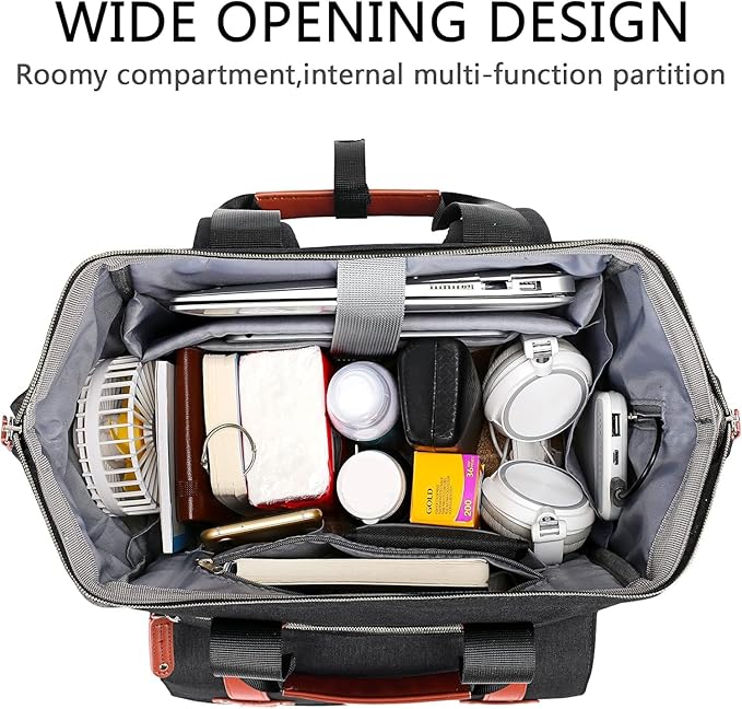 FALANKO Laptop Backpack for women, Doctor Teacher Work RFID Anti Theft Laptops Backpack with USB Charging Port, Wide Open College Travel 15.6 Inch Computer Bag for Men Women