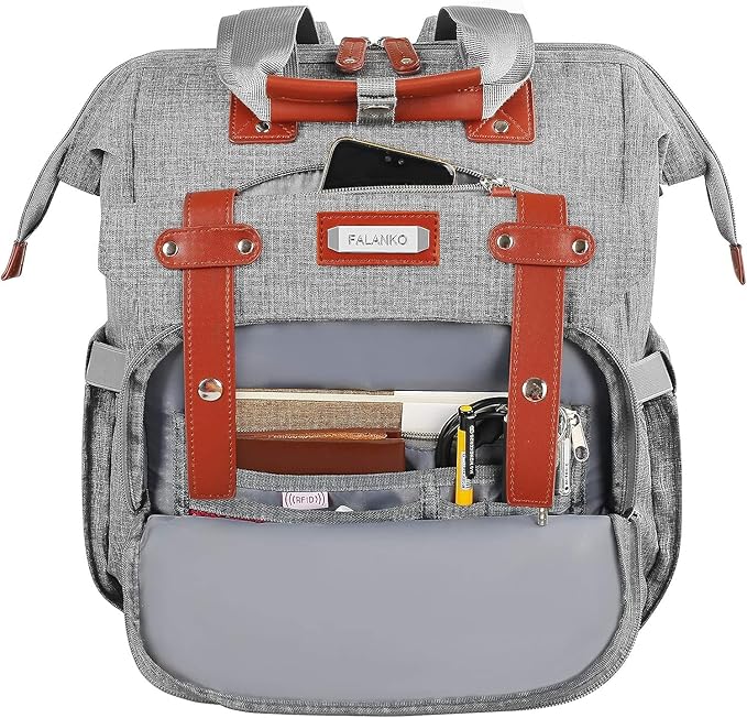 FALANKO Laptop Backpack for Women, 15.6 Inch Computer Backpack Doctor Teacher Work Purse Bookbag, Wide Top Open College Water Resistant Travel Casual Shoulder Bag with USB Charging Port