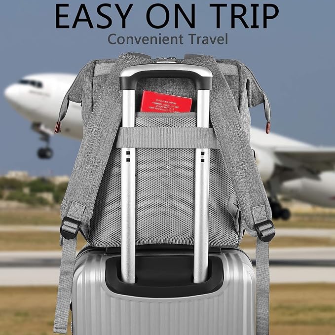 - 【Comfortable & Convenience】This College backpack for women with adjustable padded extended wide shoulder straps can release your pressure on the back and shoulder, can relieve the fatigue from your shoulder well to ensure you full day comfortable, nice for work business and travel.The luggage strap can be inserted and fixed to the handle of trolley or suitcase, making it very convenient to carry.High quality leather handle,can use it as a shoulder handbag