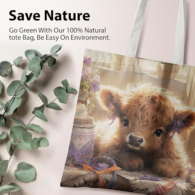 Western Highland Cow Canvas Tote Bag - Highland Cow Lover Gifts,Canvas Shoulder Bag for Women for Girls