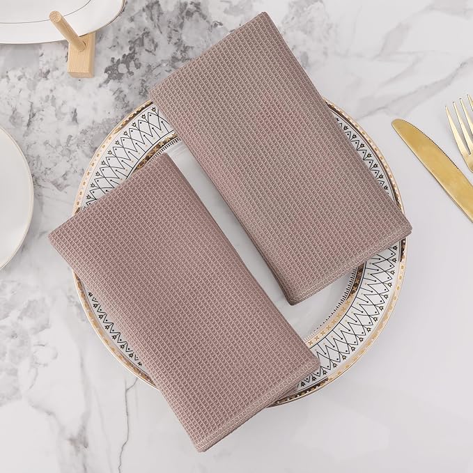 Homaxy 100% Cotton Waffle Weave Kitchen Towels - 4 Pack Soft and Absorbent Dish Towels - 16 x 26 Inches Quick Dry Hand Towels - Brown
