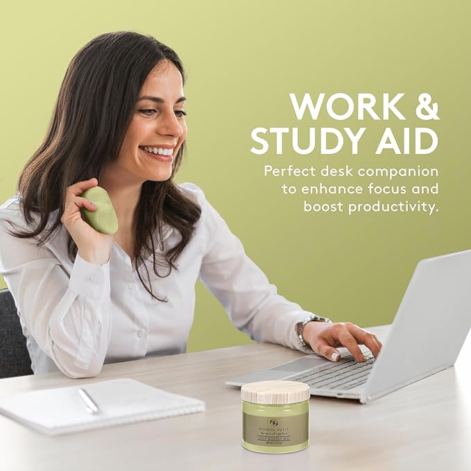 - Scented Putty- Experience the tranquility of our aromatic hand putty. The scented putty is infused with essential oil and provides a soothing spa experience, promoting focus, and allowing for self care. Its soft, squishy texture and holistic scent and color create a calm effect that helps reduce stress and promote relaxation.