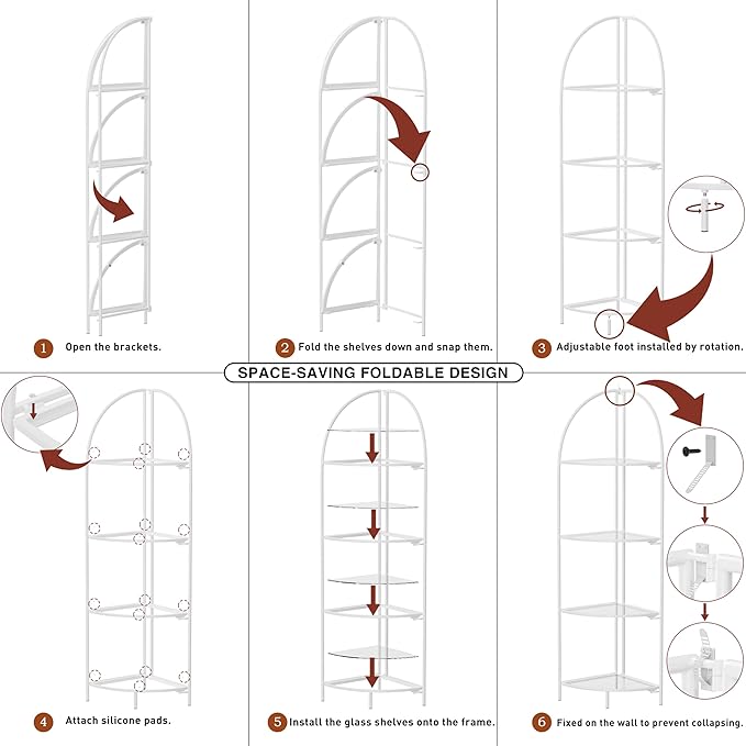 - 【Foldable Design And Effortless Assembly】Our Crofy corner shelf can be folded to store when not in use. You can fold or unfold it in a few seconds without any assembly. With its foldable design, it only takes up a small space, which can save your space.