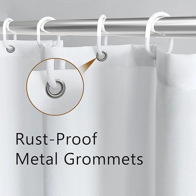 - 【Easy Install】 Each package provides one 60” Width x 72” Length polyester shower curtain and 12 plastic hooks.there are metal grommets on the top, and the shower curtain can be hung on the pole quickly by using curtain rings.when you want to clean or replace the shower curtain, it can be removed easily.