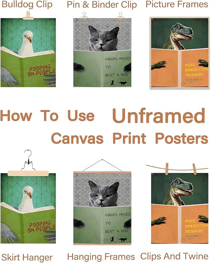 - Unframed Wall Art Prints (Versatile bathroom wall art): These funny bathroom pictures wall decor give you the freedom to choose your favorite frame, hang these posters with clips, or stick them directly on the wall. These quotes wall decor allow you to match existing decor or create a unique and personalized display. This funny bathroom wall art set is suitable for cottages, bedroom, living room, bathroom, book room, dining room, hallway, office, etc.