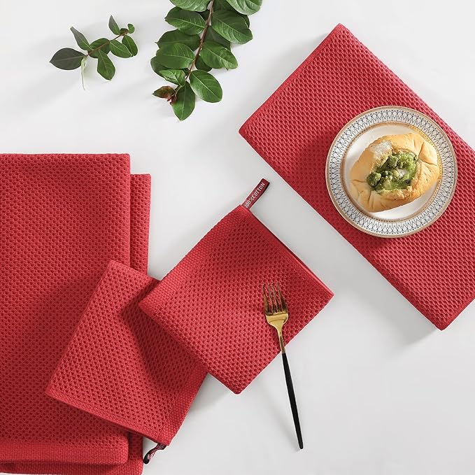 Homaxy 100% Cotton Kitchen Towels and Dishcloths Set, 12 x 12 Inches and 13 x 28 Inches, Set of 8 Bulk Kitchen Towels Set, Ultra Soft Absorbent Dish Cloths for Washing Dishes, Red