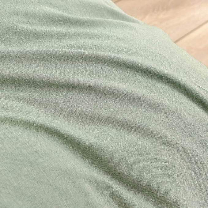 BESTOUCH Duvet Cover Set 100% Washed Cotton Linen Feel Super Soft Comfortable Chic Lightweight 3 PCs Home Bedding Set Solid Green Oversized Queen