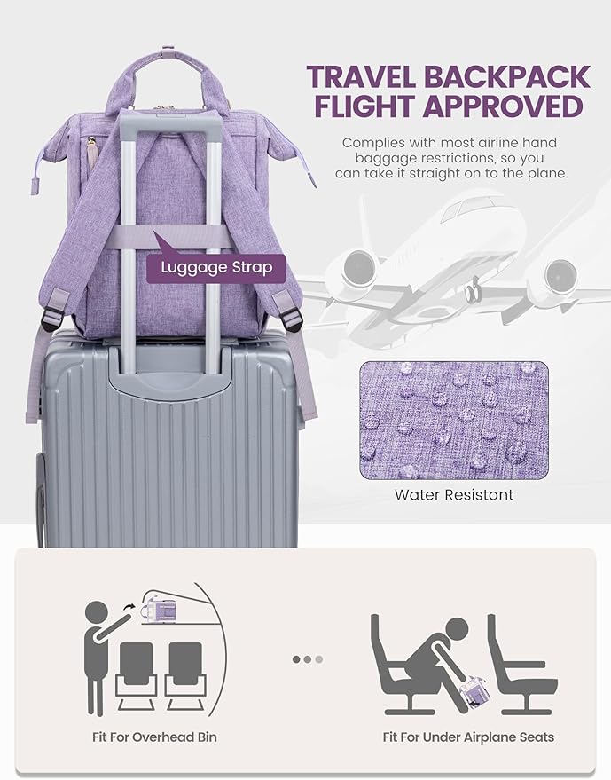 - Travel-Friendly & Versatile : This travel backpack carry-on flight approved is equipped with a luggage strap and trolley sleeve, making it perfect for travel, work, and daily use. Its airline-friendly design complies with most hand baggage restrictions. An excellent gift for teachers, doctors, nurses, new moms, and office commuters who need a versatile carry on backpack.
