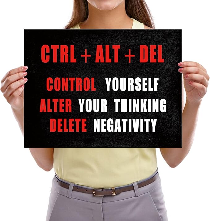 Pyradecor Black Red and White Motivational CTRL+ALT+DEL Classroom Positive Quotes Inspirational Poster Canvas Prints Wall Art for Office Living Room Home Decorations
