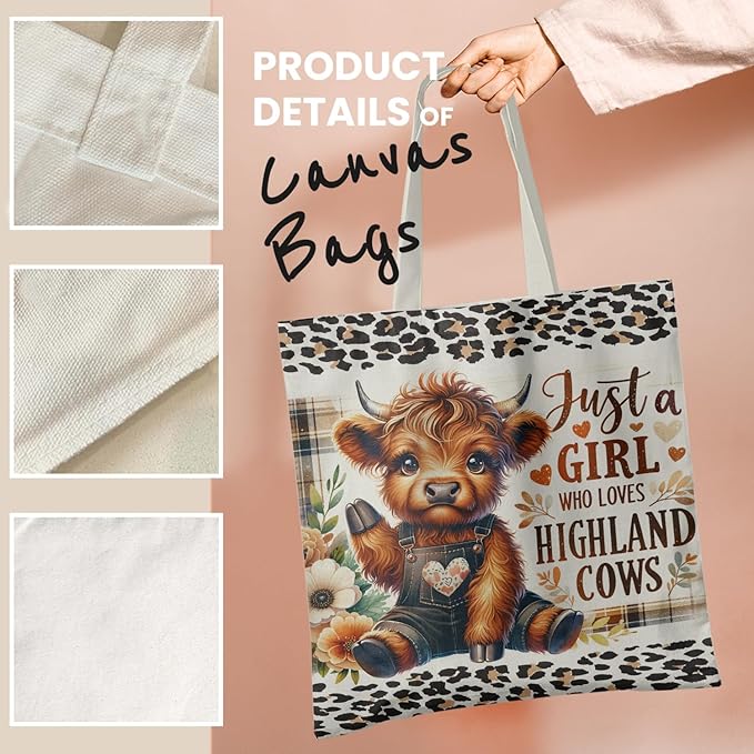 Western Highland Cow Canvas Tote Bag - Highland Cow Lover Gifts,Canvas Shoulder Bag for Women for Girls