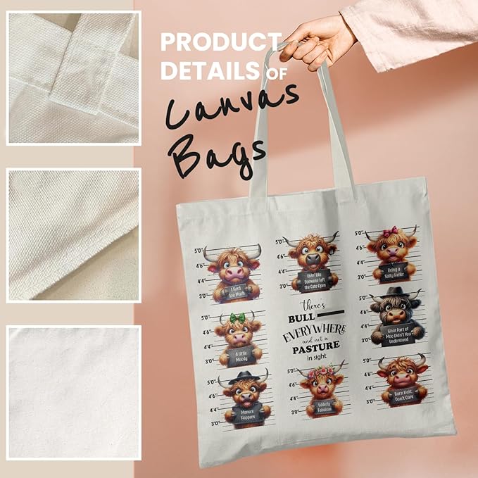 Western Highland Cow Canvas Tote Bag - Highland Cow Lover Gifts,Canvas Shoulder Bag for Women for Girls
