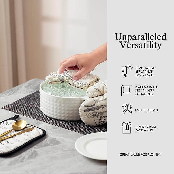 - Elegant and Practical Design: Featuring a luxurious woven texture with precision cutting, Onebento placemats bring a touch of sophistication to any dining setting. Their versatile design suits both indoor and outdoor use, making them ideal for daily meals, special occasions, or as thoughtful gifts for housewarmings, weddings, and more. With place mats on the table, your table setting feels extra inviting – for both everyday meals and parties.