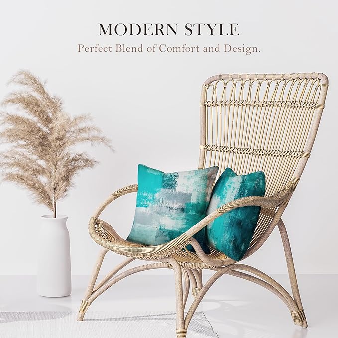 Teal and Gray Throw Pillow Covers,Set of 4 20 x 20 Inch Turquoise Modern Abstract Art Artwork Decorative Pillow Cushion Covers for Couch Bedroom Living Room