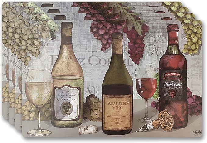 Vinyl Rectangular Placemats Set of 4 - Non Slip Place Mats Ideal for Indoor and Outdoor Dining Table - Washable and Heat Resistant Table Mat for Kitchen Tables (Wine Trio)