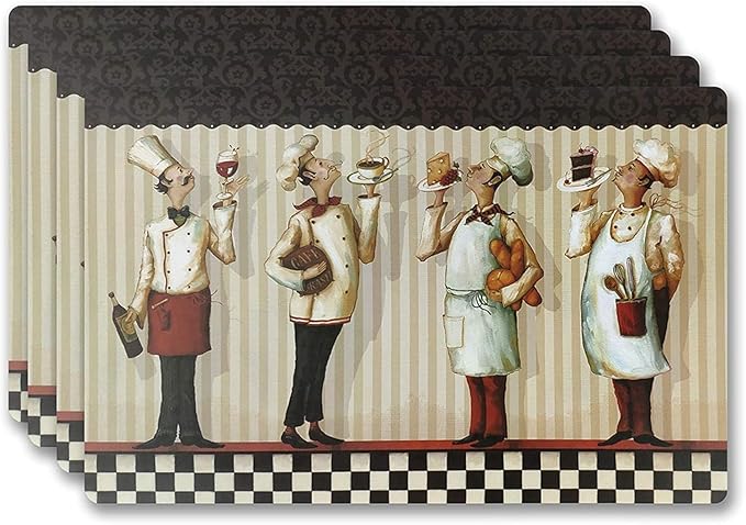 Vinyl Rectangular Placemats Set of 4 - Non Slip Place Mats Ideal for Indoor and Outdoor Dining Table - Washable and Heat Resistant Table Mat for Kitchen Tables (Chef Master)