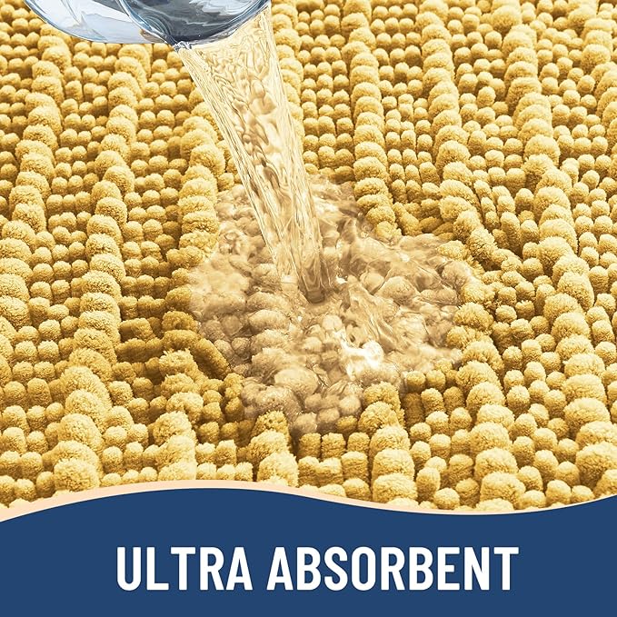 Arotive Luxury Chenille Bathroom Rug Mat, Extra Soft Thick Absorbent Shaggy Bath Rugs, Non-Slip Machine Wash Dry, Plush Bath Mats for Bathroom, Shower and Tub, 54x24, Yellow