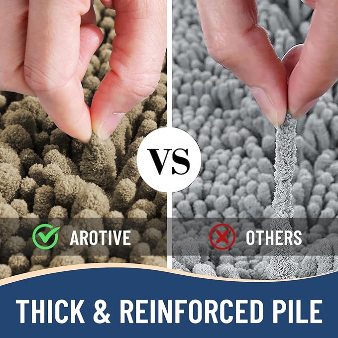 - Anti-Skid Backing: Arotive chenille bathroom rugs feature a non-slip bottom consisting of sturdy mesh PVC material that stops the bath mat from shifting and skidding. The middle layer is 4 mm memory foam, which can let you feel more comfortable when wrapping into the rugs. WARNING: Place bath mat on CLEAN DRY FLAT FLOOR ONLY. Water under bath rug can cause it to slip. Always keep the bottom of bath rug dry