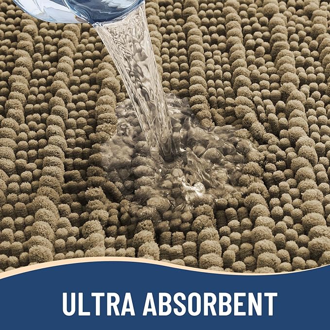 - Quick Water Absorption: Our shaggy bath rugs are made with ultra-soft microfiber shags that efficiently absorb water. The chenille fabric quickly draws in moisture, helping to keep your floors dry when you step out of the bath, shower, or while you're at the sink. The high pile traps moisture, allowing the rug to dry quickly and maintain its cleanliness